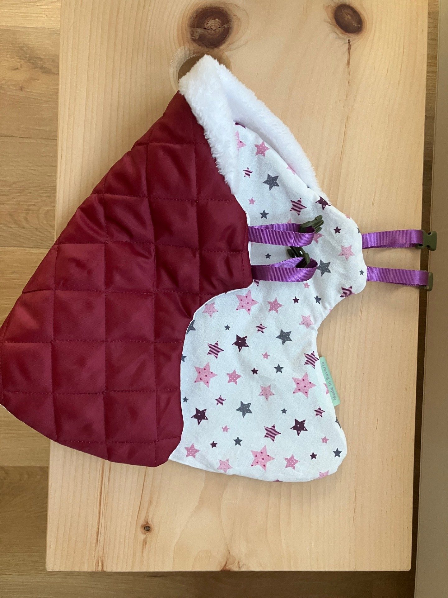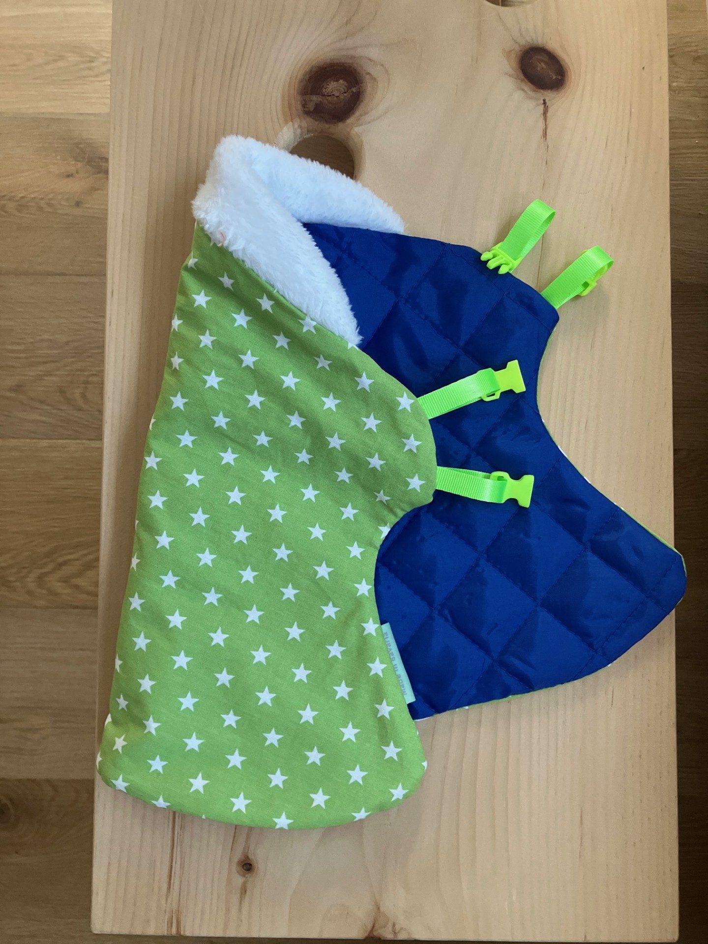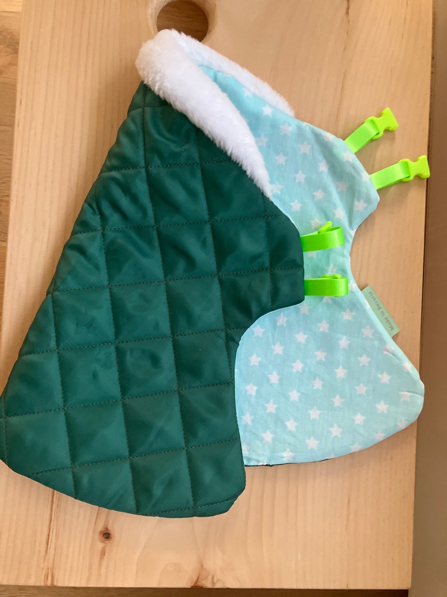 Leichte und extra kleine Stalldecke für Dein Hobby Horse, farbenfroher Steppstoff und kuscheliges Teddyplüsch mit CLIPS